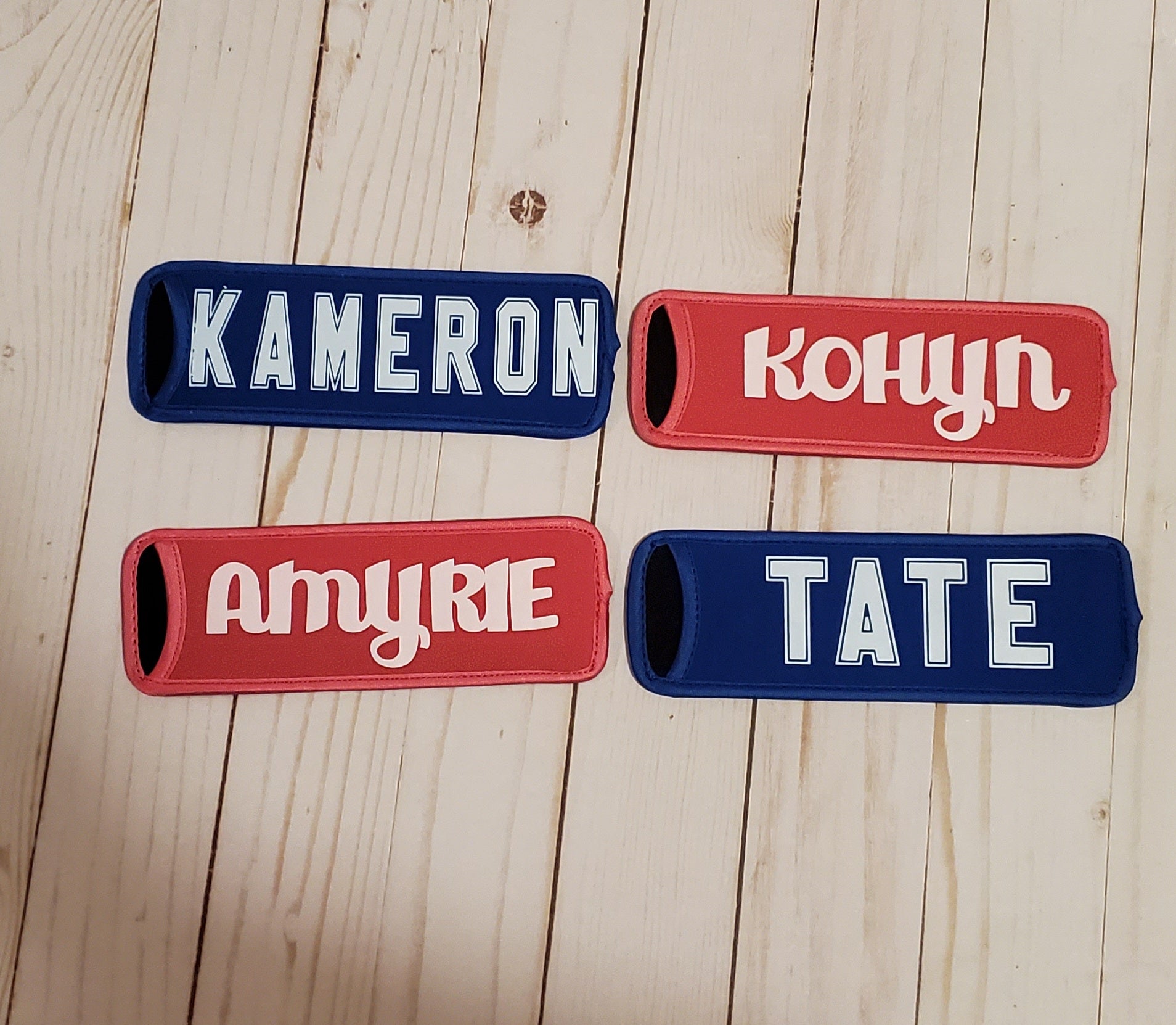 Personalized popsicle holder to help keep your kids and kids at heart hands warm while eating a popsicle. You are able to take your time while you wat the popsicle.